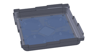 This x-section of an EZscape tray shows the drain path from the upper planted section of the module down through the lower section cavities.